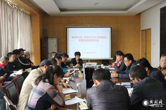 为迎接我校六十周年校庆,美化校园环境,确保校庆前各项基建工作任务的顺利完成,4月13日下午,基建处组织召开 “奋战60天,为科大六十华诞献礼”主题活动动员大会。基建处全体人员、校内在建项目施工单位项目经理及监理单位总监理工程师、质保期内项目维保负责人等参与了会议,会议由副处长张宇翔主持。